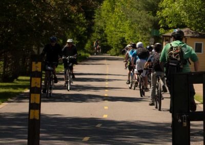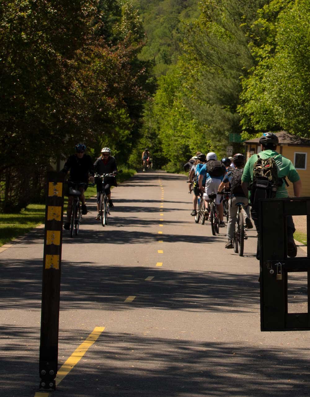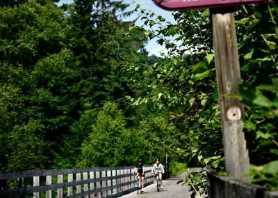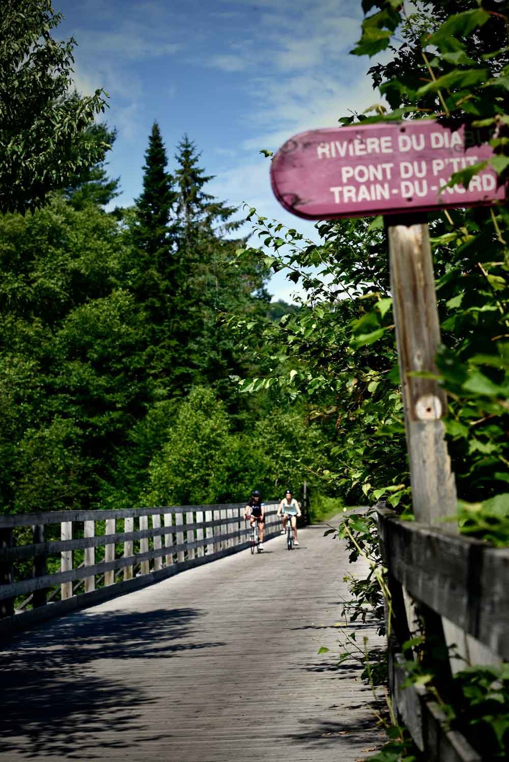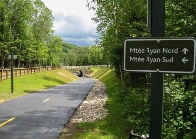 A 3 km cycling path links the P’tit train du Nord with the pedestrian village of the Mont-Tremblant ski resort where an array of activities are offered.