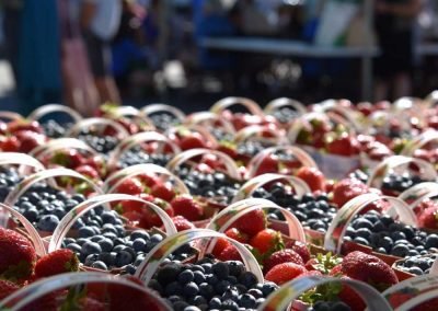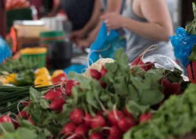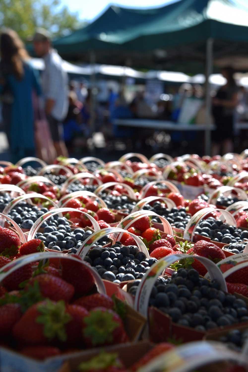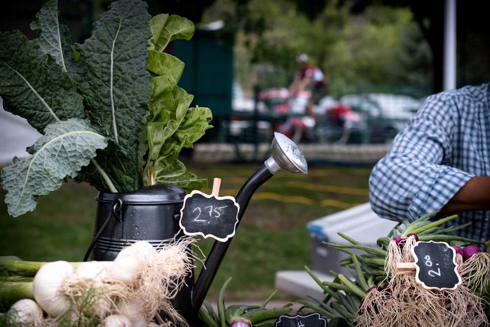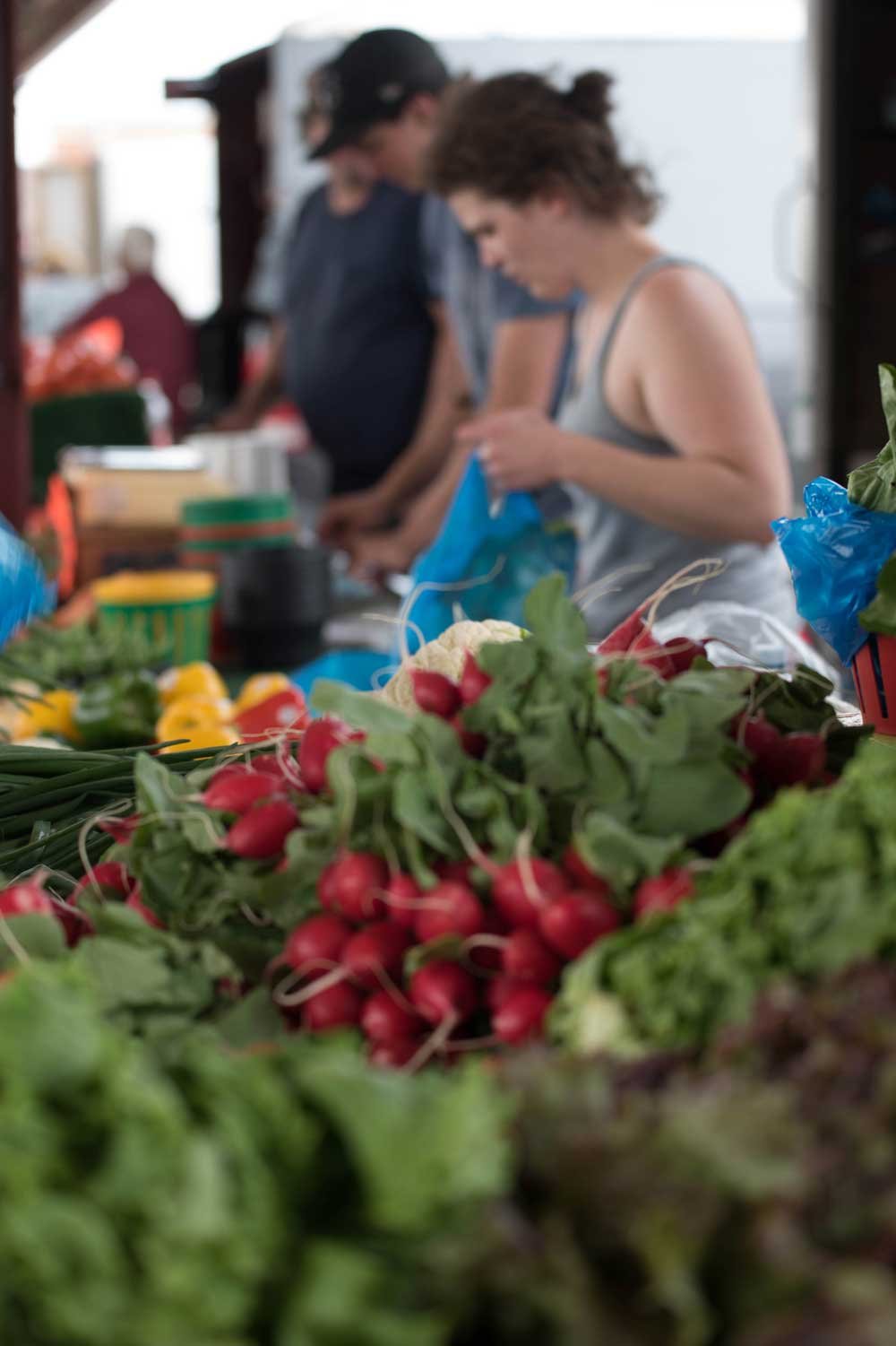 A summer Saturday morning is a perfect time to stroll the public market adjacent to the trail.